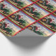 Santa Driving a Green Tractor Wrapping Paper