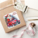 Santa Driving a Red Car Through a Snowy Landscape Square Sticker