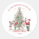 Christmas Holidays sticker with Santa, elf's and colourful tree "It the morning it will be Christmas".