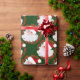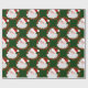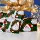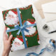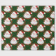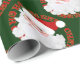 Santa Face Circles-Santa's sporting is red Santa hat and gold glitter glasses. Red and gold text circles around and reads: Ho Ho Ho, Merry Christmas! The background is solid green. This Santa wrapping is available with assorted background colours. It's also available as an allover Santa without the circled text.