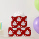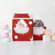 Santa Face Circles-Santa's sporting is red Santa hat and gold glitter glasses. Red and gold text circles around and reads: Ho Ho Ho, Merry Christmas! The background is solid red. This Santa wrapping is available with assorted background colours. It's also available as an allover Santa without the circled text.