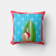 Santa Golden Surfboard Dog Seagull Christmas Throw Pillow
