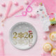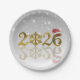 Santa Hat and Snowflake | Happy New Year 2026 Gold Paper Plate