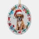 Santa Hat Boxer Puppy Bone Wreath Ceramic Ornament