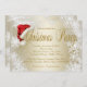 Santa hat Christmas party invitations with white snowflakes on a gold background. This elegant snowflake Christmas party invitation is easily customized for your event by simply adding your details in the font style and colour of your choice.