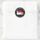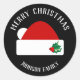 This Santa Hat round sticker label has a black background with a simple design Santa's hat in the centre with Merry Christmas greeting at the top and family name below. Personalize this with your own greeting and family name. This sticker is great for Christmas card envelopes or cookie exchange gifts.