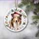 Santa Hat Collie Dog Holiday Images Wreath Ceramic Ornament