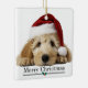 Santa Hat Goldendoodle Dog Merry Christmas Ceramic Ornament