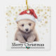 Santa Hat Polar Bear Cub Merry Christmas Ceramic Ornament