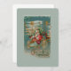 Here comes Santa! He is steering his amazing flying machine through the night sky. Stars, streamers and fancy decorations bedeck the aircraft and its load of wonderful toys for Christmas morning. The restored image of a Victorian postcard features a frosty background, gold accents and beautiful, bright colours. It is framed in icicles and ornaments with a Christmas village in the background.
