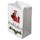 Santa with a bag of toys, and a row of Holly with "Merry Christmas" script
