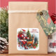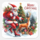 A joyful Santa Claus is seen ice skating alongside a cheerful reindeer. The festive backdrop includes a beautifully decorated Christmas tree and colourful gifts, creating a delightful holiday atmosphere filled with cheer and celebration.