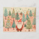 Carte Postale Père Noël dans une forêt d'arbres de Noël