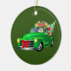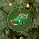 Santa in Green Pickup Truck Ceramic Ornament