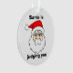 "Santa is judging you" funny slogan Christmas ornament with suspicious looking Santa cartoon.