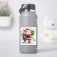 Amidst a whimsical winter wonderland, Santa cheerfully carries a beautifully wrapped present in one hand and a vibrant bag full of golf clubs in the other.