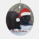 Pretty black kitty with santa hat ornament, that reads: Merry Christmas. You are welcome to change the words.