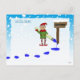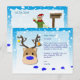 A blue postcard for kids that features falling snow, a reindeer and a naughty elf. Send your child this personalized letter from Santa, there is room on the back for their Christmas list. The name, message and greetings can all be customized. For boys big and small.
