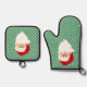 Santa on Green Gingham Checks Design Oven Mitt & Pot Holder Set