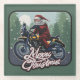 Santa on Motorcycle Glass Coaster
