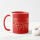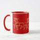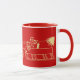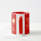 Beautiful, faux gold Santa Claus on red background, riding in his sled / sleigh being drawn by 4 reindeers, two-tone white and red, christmas eve tea coffee milk mug. Great mug for kids and adults. Perfect mug for Santa Claus, for his milk and cookies.