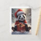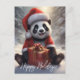 Adorable Santa Panda Bear and a snow village in the background. Easily personalize the text
