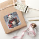 Adorable Santa Panda Bear and a snow village in the background. Easily personalize the text