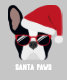Santa Paws is comin' to town! This black and white french bulldog is ready for the Christmas holidays wearing a red Santa hat and of course, not forgetting the stylish sunglasses too.