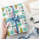 Here's an adorable Christmas wrapping paper design that features the family's best friend, the dog. Three different cartoon dogs decorate this design, along with a holiday tree, a gift package, and a dog house festive with Christmas lights. Colourful text phrases "We woof you a Merry Christmas", "Feliz Navi-Dog", and "Santa Paws" complete the design. You can even customize the name of the dog on the sign on the dog house! The fun images are predominantly teal blue, red, and green, and placed on a white background to stand out. Cute and colourful! *This design uses clip art copyrighted by Encore Software, Inc., which permits use to its licensors. All rights reserved.