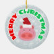 Illustration of a pig wearing a Santa outfit with "Merry Christmas" greeting on the back