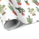Pattern with illustrations of potted plants including aloe, cactus, and palm decorated with Christmas decorations including ornaments, bows, santa hat, and lights, and stars.