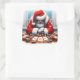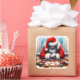 Santa sits at a table covered in colourful poker chips, deeply focused on his hand of cards. The snow falls outside the window, creating a cozy, holiday atmosphere.