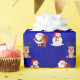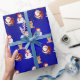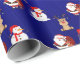 Our Santa, Reindeer, and Snowman X'mas Wrapping Paper features these three time honoured Christmas icons on a bright blue foil-like background. This wrapping paper is great for kids and children.