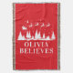 Santa reindeer believes Christmas traditional red and white holiday blanket decor gift.