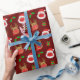 Santa Reindeer Face Mask Dark Red Christmas Wrapping Paper