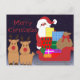 The Santa & Reindeer Postcard makes a great way to send holiday greetings! The retro design features Santa with two reindeer, along with his sleigh filled with packages. The text reads, "Merry Christmas." Customize the text as desired.