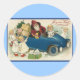 Santa Riding in a Car - Joyeaux Noel Classic Round Sticker