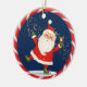 This cute ornament showing a happy Santa ringing a gold bell while skating in front of a cascade of tiny gold and silver stars. The image shows up clearly against the dark blue background, and is framed with a pretty red and white candy cane stripe pattern. The back of the ornament has the same striped frame, and several text fields for you to customize. You make easily change the "Happy New Year" text to a child's name, if you'd prefer. It's up to you!