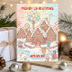 A sweet candy-filled Christmas village illustrated in watercolor creates a joyful and colorful greeting for kids. Add a name for personalization. Bright, happy, and full of Christmas delight.