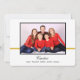 A simple Christmas card with a colorful design. On the front the design features a Santa image with a unique "Merry Christmas" graphic image on a patterned blue background. Place your photo on the back with the family name plus individual names if desired. Changing the photo and text is easily done by using the template. For other changes (different type font, color, size or placement OR to remove, resize or rearrange the gold line and Santa image) select "Personalize" then select "Edit using Design Tool." See Options for different corner designs, paper selection, etc. Comes complete with envelopes unless you select none as one of the options. You may also want to scroll down to the section "Transfer design to a product" for a few suggestions about other items the design can be used on.