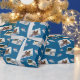 This photo Christmas wrapping paper features two of your favourite photos and fun sharks in Santa hats on a blue background. Add personalized fun to this holiday with this photo and animal pattern gift wrapping.
