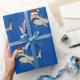 A drawing of a cartoon shark wearing a Santa Claus hat.