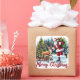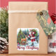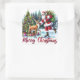 Santa Claus enjoys a festive moment skating while greeting a reindeer. Surrounded by beautifully decorated Christmas trees and colourful gifts, this cheerful scene captures the joyful spirit of the holiday season in a wintry wonderland.