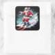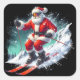 Santa Skiing Down a Snowy Slope on a Winter Day Square Sticker