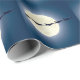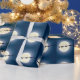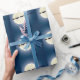 This patriotic military holiday Christmas wrapping features Santa Claus and his sleigh pulled by a team of F-16 Fighting Falcon jets with a full moon background. -