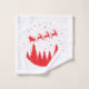 Santa Sleigh and Reindeer Flying Over Treetops Red Bath Towel Set