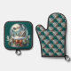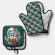 Santa Sleigh Ride in Snow Globe Wonderland Oven Mitt & Pot Holder Set