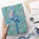 Cute Christmas wrapping paper featuring a pattern of lazy sloths hanging about with Christmas trees, presents, candy canes, and snowflakes.