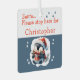 Santa stop here name cute penguin grey metal ornament