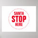Santa Stop Here red and white cute funny Poster, Christmas decorations.